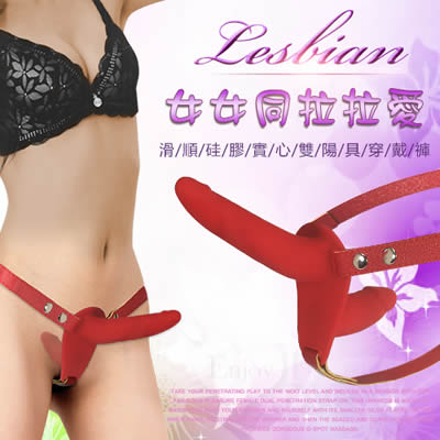 Lesbian 女女同樂拉拉愛 滑順硅膠實心舒適雙陽具穿戴皮褲﹝紅色﹞可拆卸皮褲