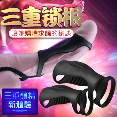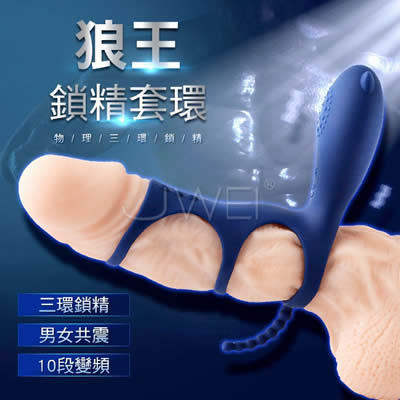 Mr.B.M18狼王 10段變頻男女共震三環延時鎖精套環-藍色